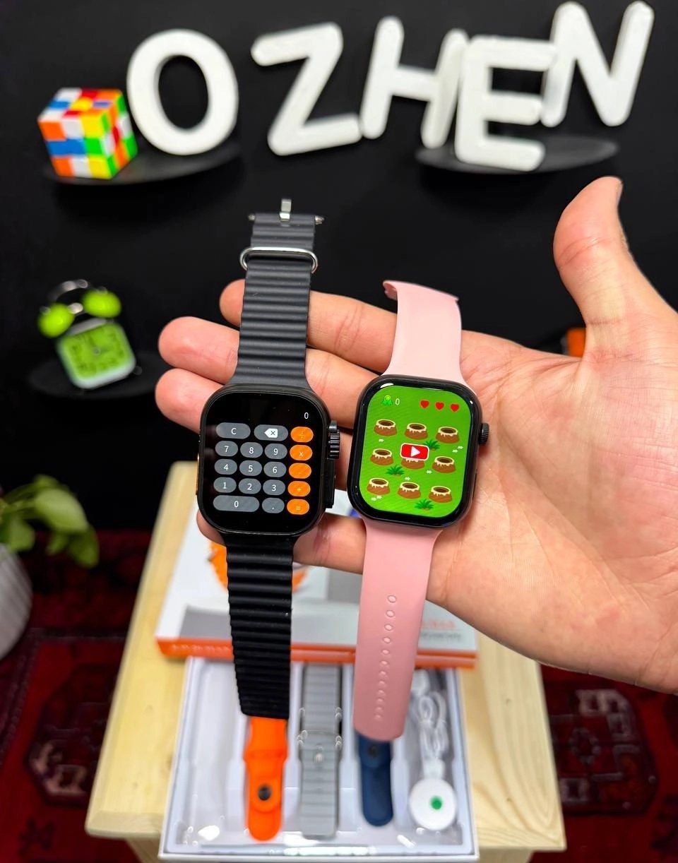 هر ساعت دارای نمایشگر تمامصفحه رنگی HD، قابلیت مکالمه بلوتوثی و نمایش اعلانهای شبکههای اجتماعی است. حسگرهای سلامتی شامل پایش ضربان قلب، فشار خون و سطح اکسیژن خون و همچنین حالتهای ورزشی متنوع، امکان ثبت دقیق فعالیتها و محاسبه کالری مصرفی را در اختیار شما قرار میدهند. باتری قدرتمند با شارژ سریع بیسیم و منوی فارسی، استفاده طولانی و آسان از ساعت را تضمین میکند.